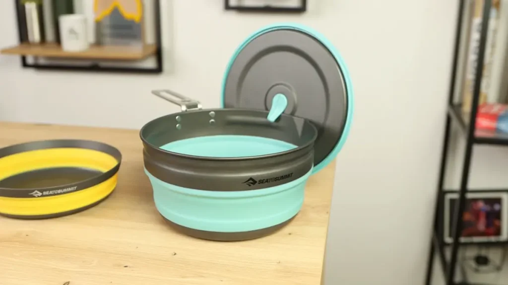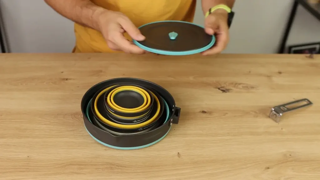 Glavni deo našeg seta je lonac od 2l, težak svega 297g, izrađen od kombinacije dva materijala, kako bi se postigla sklopivost bez gubitka performansi. Dno je izrađeno od tvrdog anodizovanog aluminijuma, što omogućava efikasan prenos toplote, dok su stranice od silikona otpornog na temperature do 300 stepeni Celzijusa. Uz ovu posudu dolaze poklopac i ručka koju je moguće skidati, a u kombinaciji sa poklopcem se koristi kao lock mehanizam prilikom transporta. Vrlo zanimljiv i pametan dizajn.