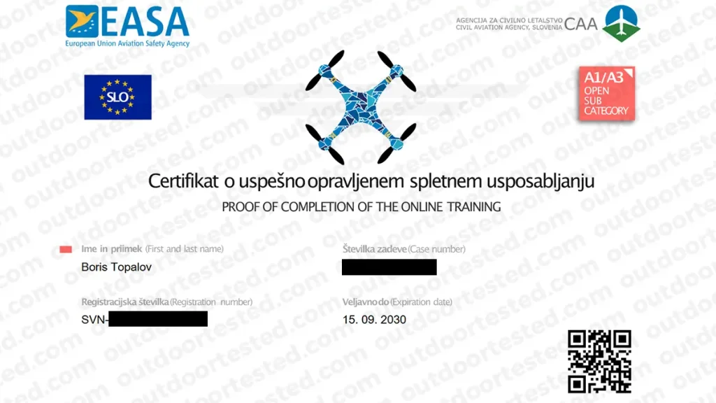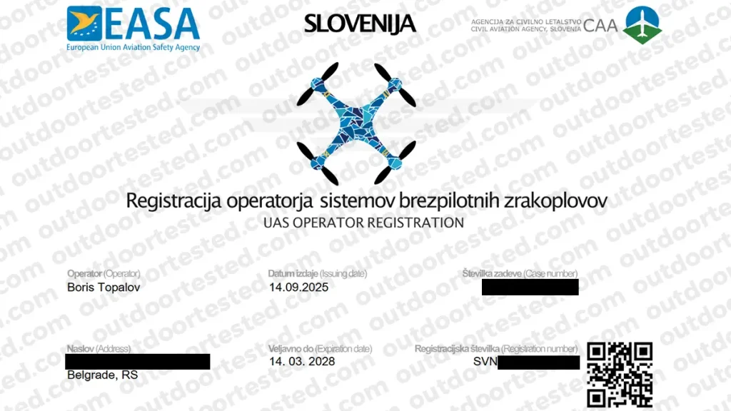 Međutim, kako smo u septembru 2025. planirali put u Sloveniju, par dana pred polazak sam krenuo da istražujem i čitam kakva je regulativa za tu zemlju. Da skratim priču u uvodu, bila je nedelja veče kada sam počeo da čitam o tome, a put je planiran za sredu. Ja sam oko 1h iste večeri već bio registrovan kao dron operater i imao položen EASA A1/A3 na svoje ime sa izdatim sertifikatom. Tako lako!