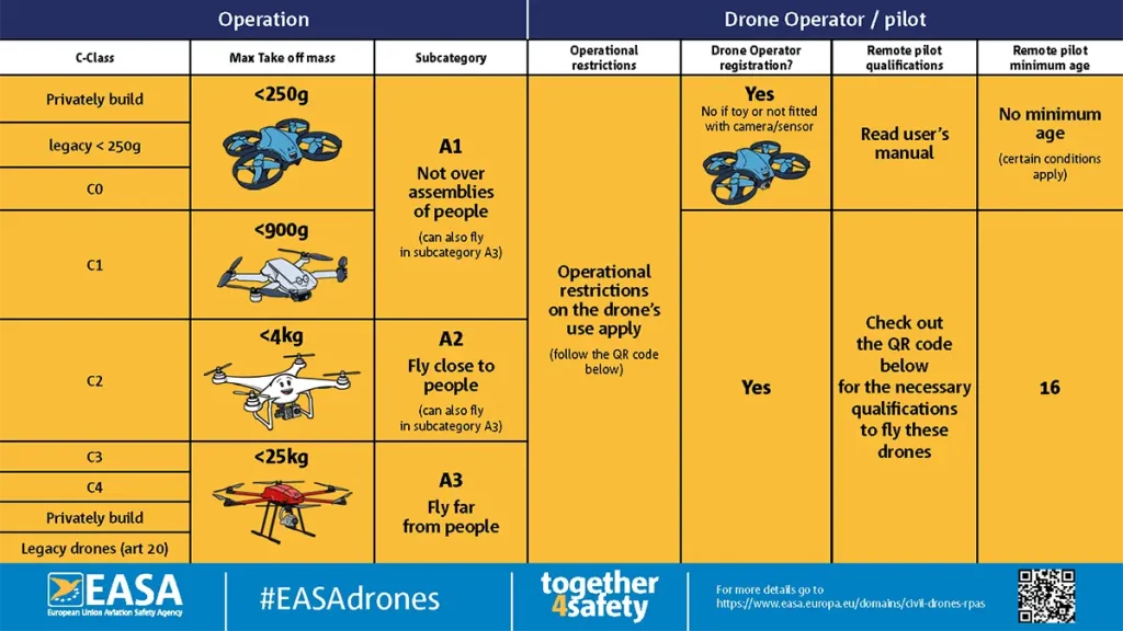 EASA A1/A3 je međunarodno priznati sertifikat za pilote dronova u “Otvorenoj” (Open) kategoriji, koji važi u svim zemljama članicama EU plus Švajcarska, Norveška i Island.