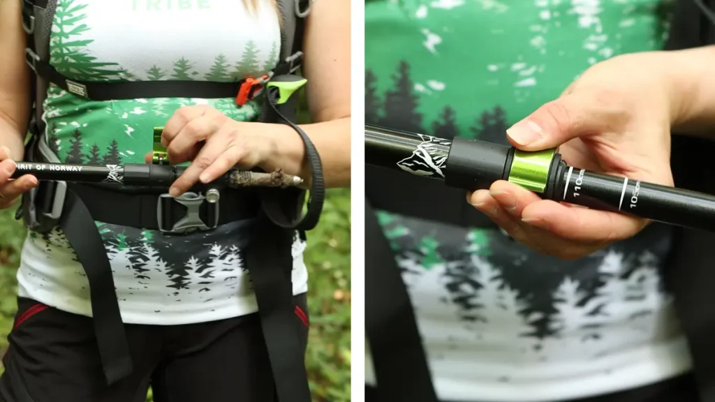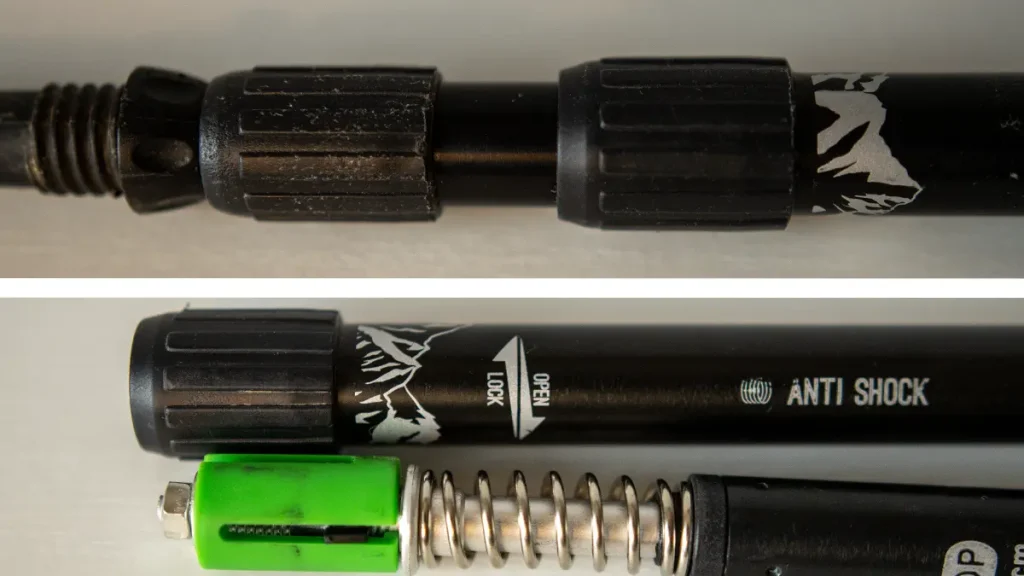 Sistem sa klipsom (clip-lock) predstavlja znatno jednostavnije i sigurnije rešenje za fiksiranje segmenata štapa na terenu. Umesto unutrašnjih navoja, ovde se koristi spoljašnja poluga koja jednim potezom čvrsto zaključava cev na željenoj visini. Ovakav mehanizam je mnogo lakši za rukovanje, naročito kada su vam ruke mokre ili nosite rukavice. Vizuelno je odmah jasno da li je štap zaključan, što pruža dodatni nivo pouzdanosti pri svakom osloncu.