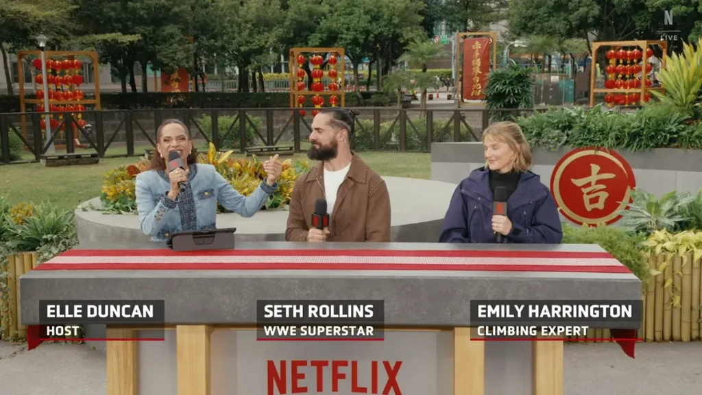 Kohost događaja, ako bi se tako moglo reći, bio je Kobi Daniel Lopez ili poznatiji po svom imenu iz ringa Set Rolins. Kakve on ima veze sa Aleksom Honoldom? Pa nikakve… Ali i svakako ima veze sa Netflixovom velikom investicijom u WWE „sport“, kod nas poznatiji kao „kečeri“. Gospodin kečer je bio tu da predstavlja milionsku publiku koja je navikla da ga sluša kako laje u prenosu – Da, bukvalno oponaša psa, a u nekoliko navrata je uspeo i da prekine Honolda u napretku govoreći mu da mahne publici, ne shvatajući koji nivo koncentracije je neophodan za ovakvo nešto.