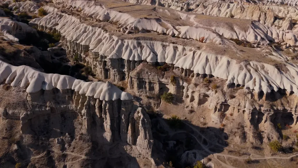 Pre oko 60 miliona godina, vulkanske erupcije iz planina Erciyes, Hasan i Göllü prekrile su region debelim slojem pepela koji se vremenom očvrsnuo u tufu. Preko njega su se taložili slojevi tvrđeg bazalta koji su formirali zaštitne kapice. Malo geologije nije na odmet.